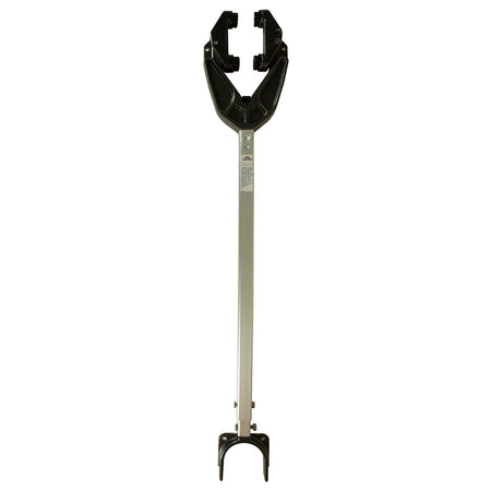 Cast aluminum head with high-strength aluminum shaft. Supports the cantilevered weight of the motor while stabilizing the engine and steering mechanisms when trailering. Varying adjustability. Includes 15″ black EPDM rubber holding strap. Guardian motor supports are available in bolt-on or over-the-roller strap-on.